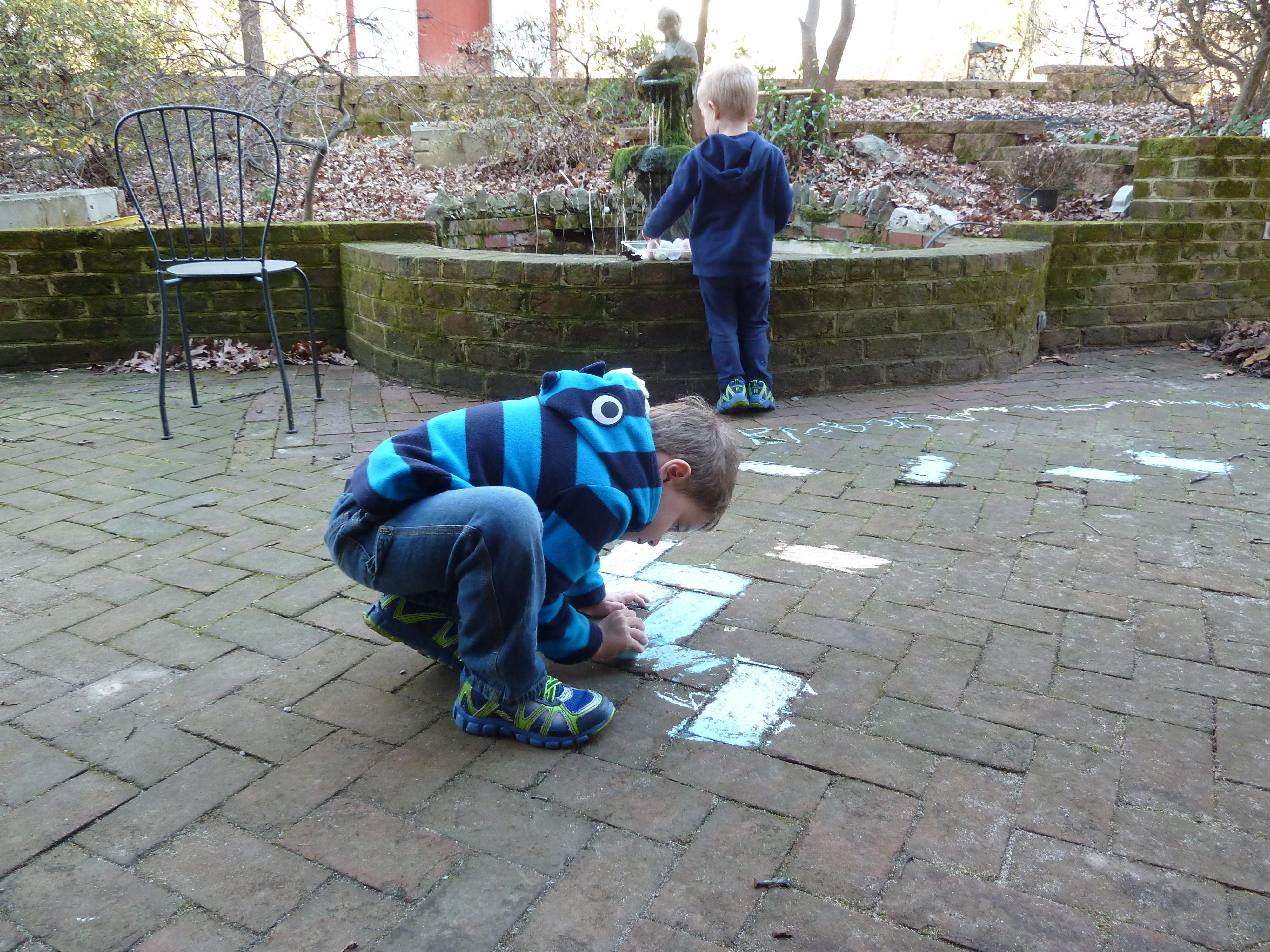 It’s a blue-skyed, balmy 57 degrees this afternoon, so the boys are outside playing, enjoying the beautiful weather.