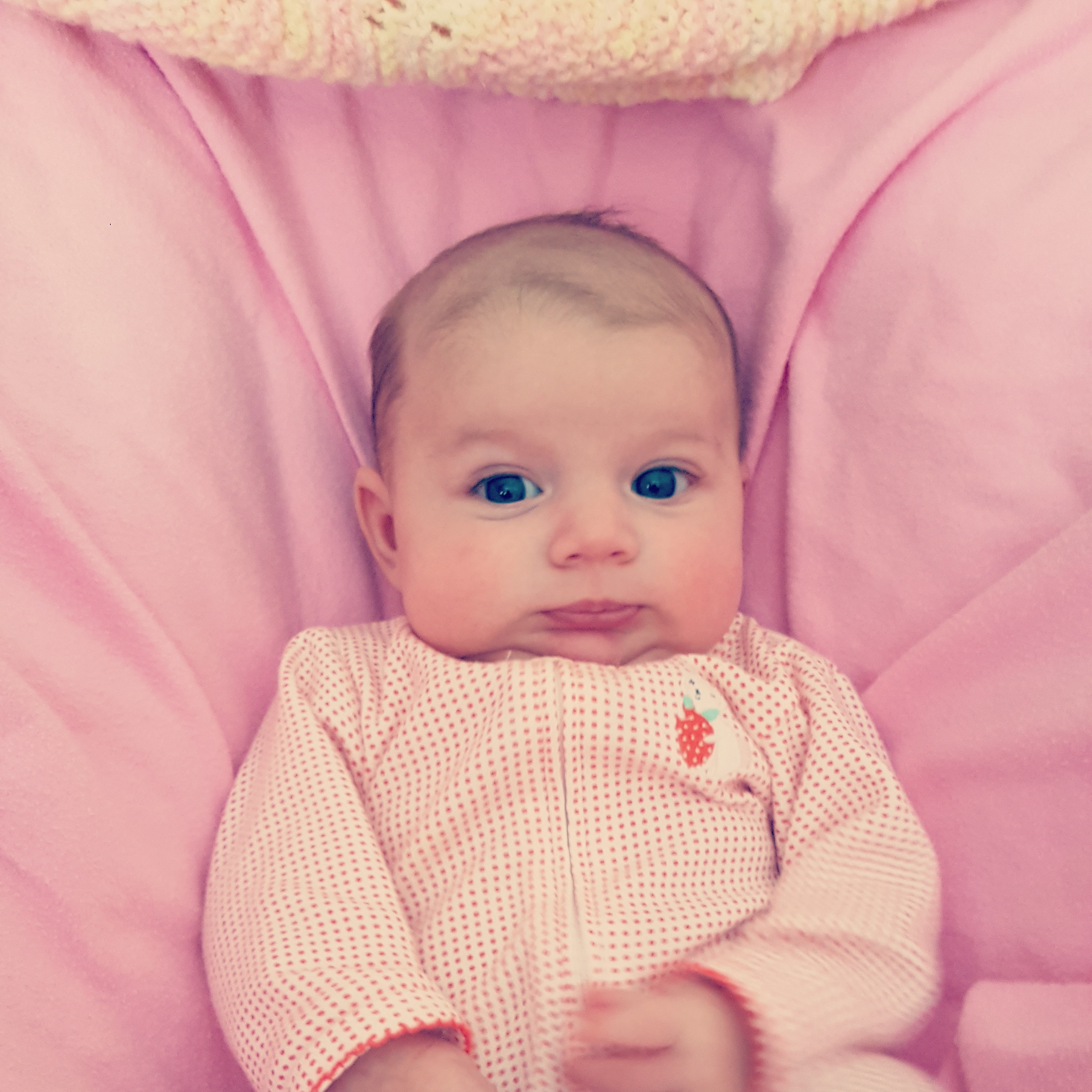 Our sweet baby girl, on the other hand, continues to be as sweet as she can possibly be. She’s still happy and laid-back and easy to handle. (Maybe she’s aware of our household’s overabundance of screaming?)