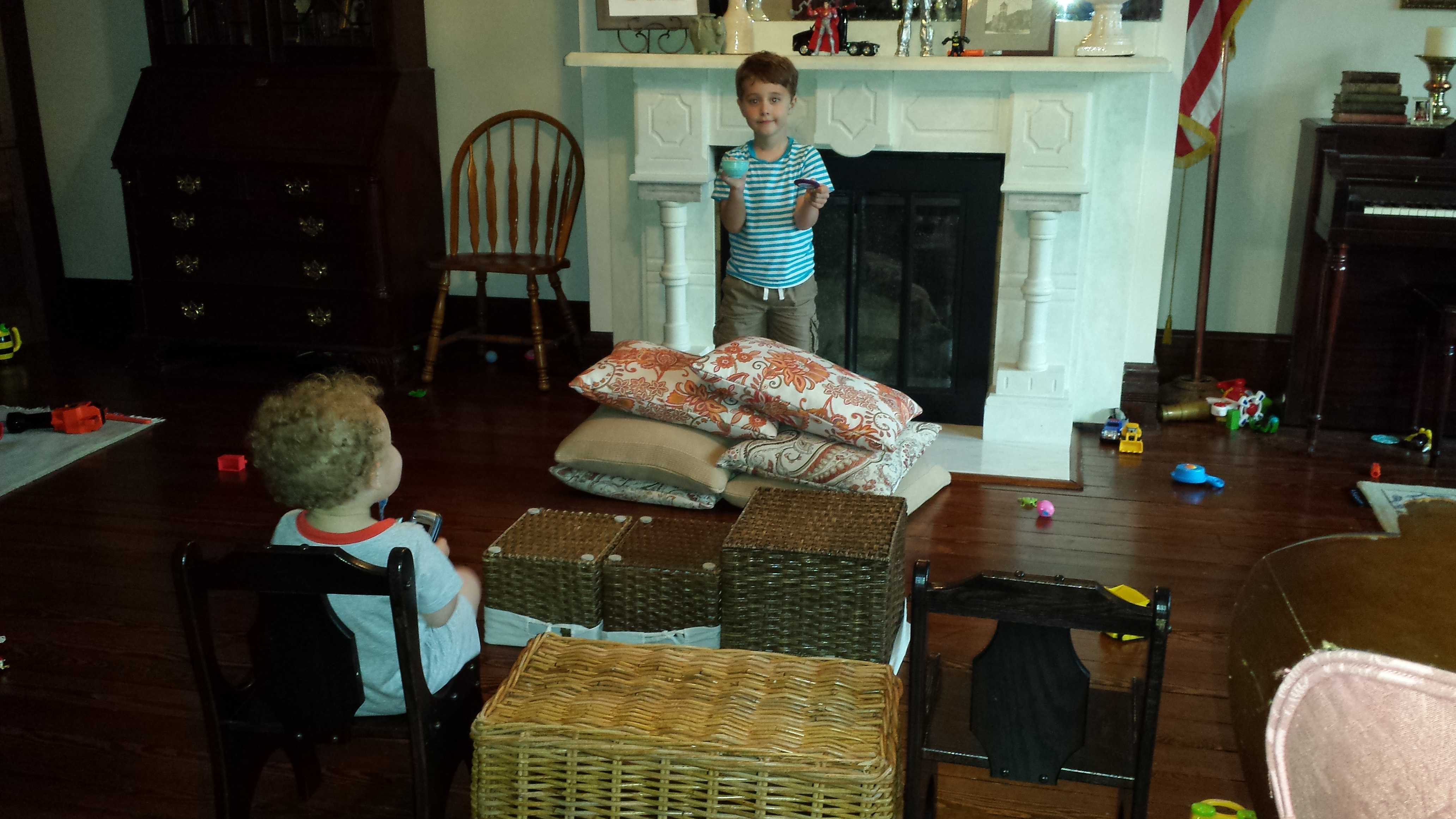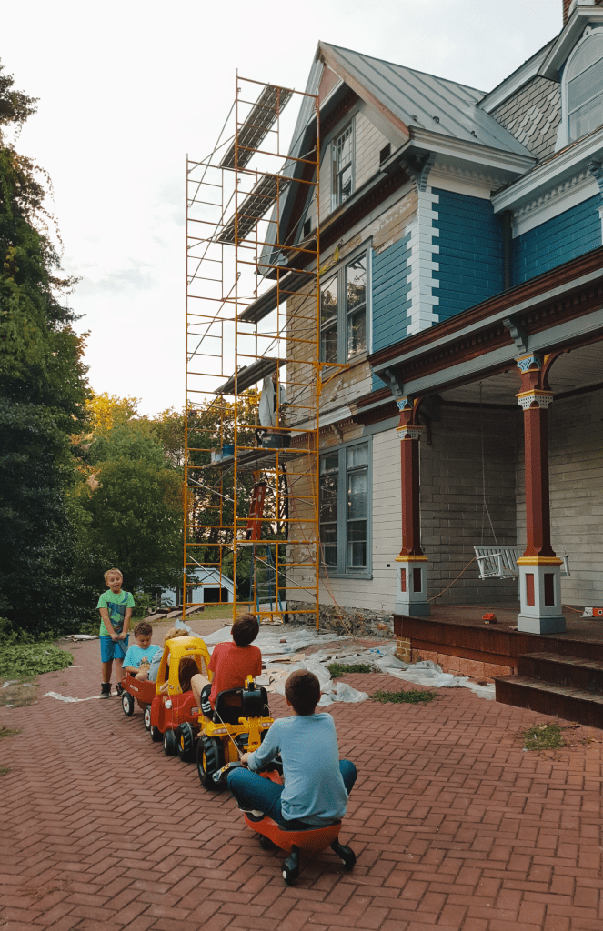 But we are doing a few things here, at home. We see my parents every now and then. Our kids are playing outside with a few neighbors. Between all of our yards the kids probably have five or six acres to wander, and it’s been pretty magical to see what they get up to. Give kids a bit of freedom and soon enough, they’ll create their own world.